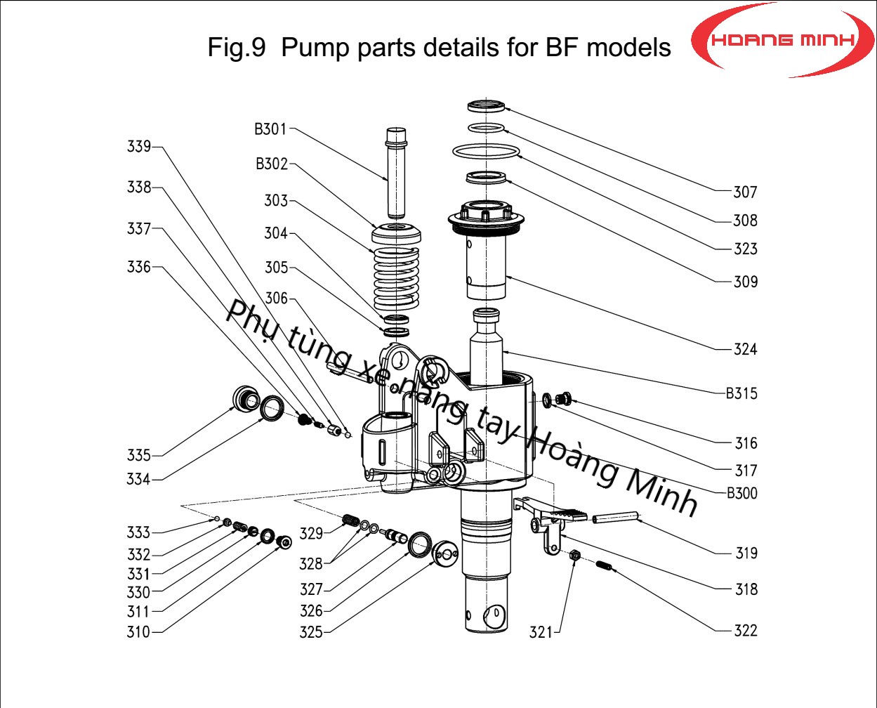 Hình 4: Chi tiết Mã số phụ tùng Bơm thủy lực BF